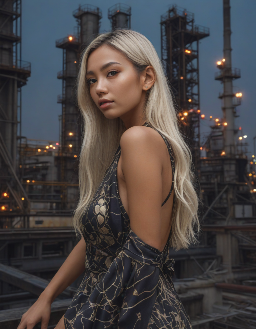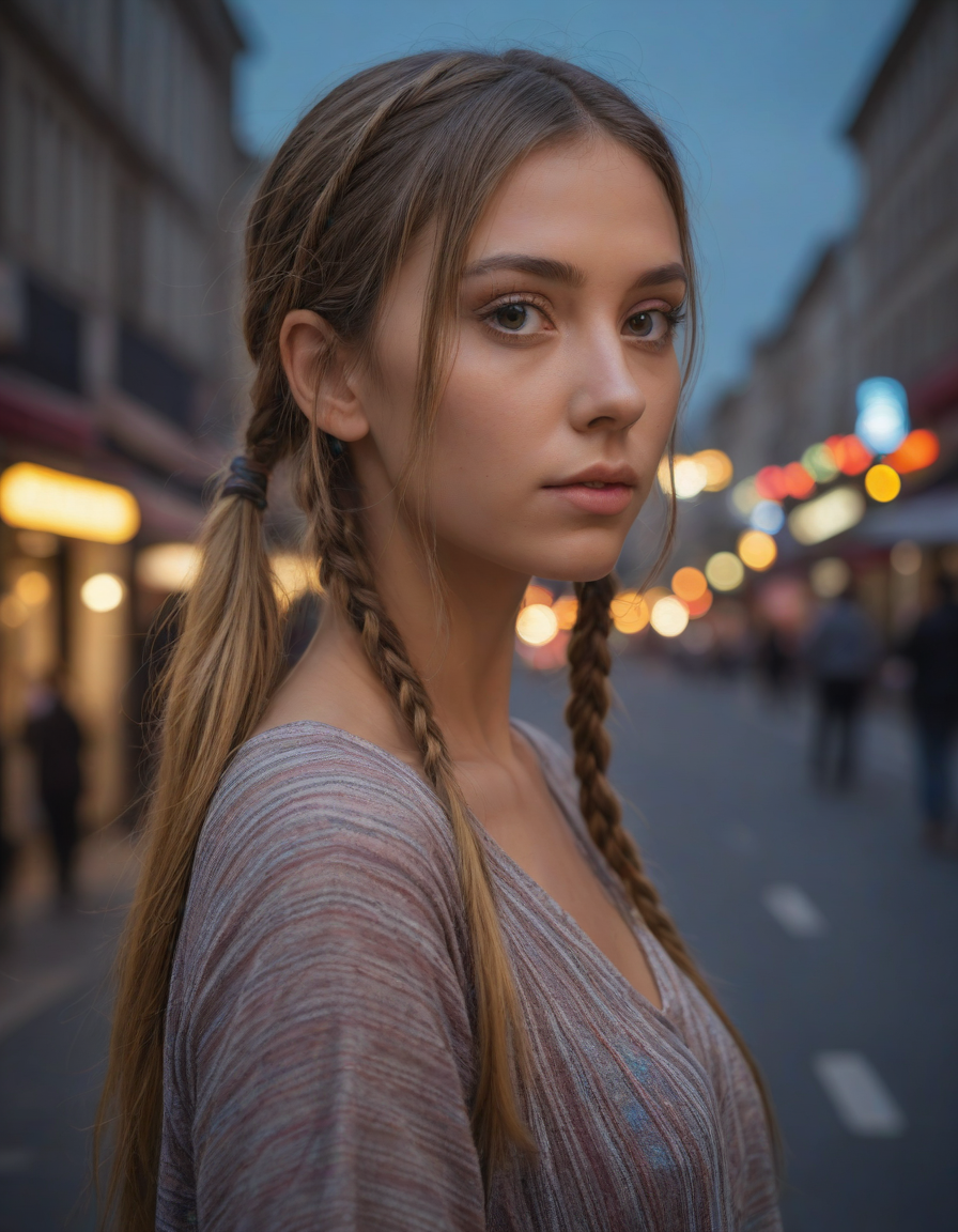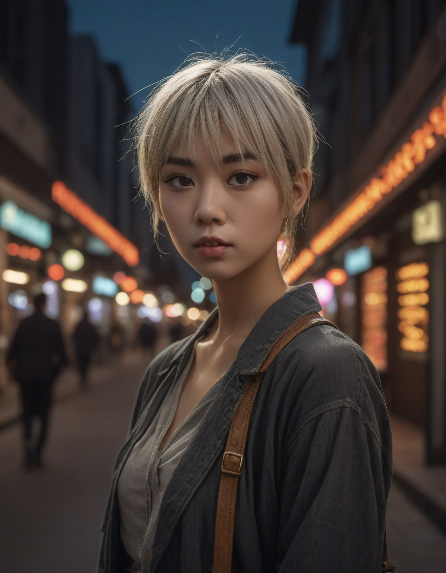 facing left, Exquisite cityscape, long exposure photography, glowing kaleidoscopic eyes