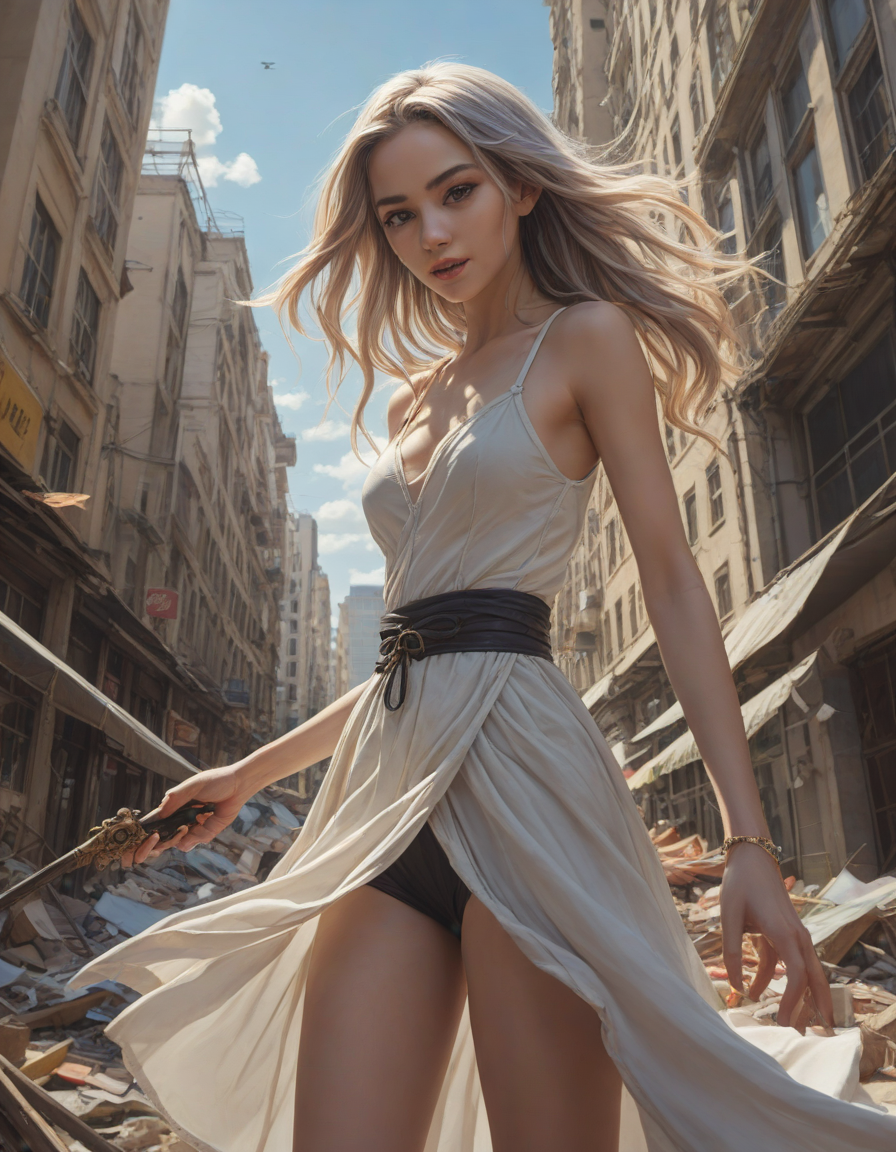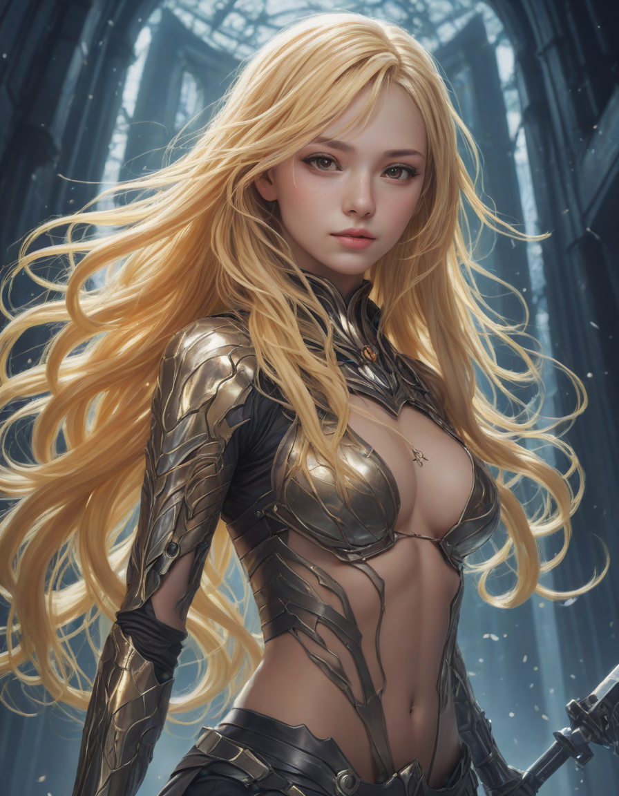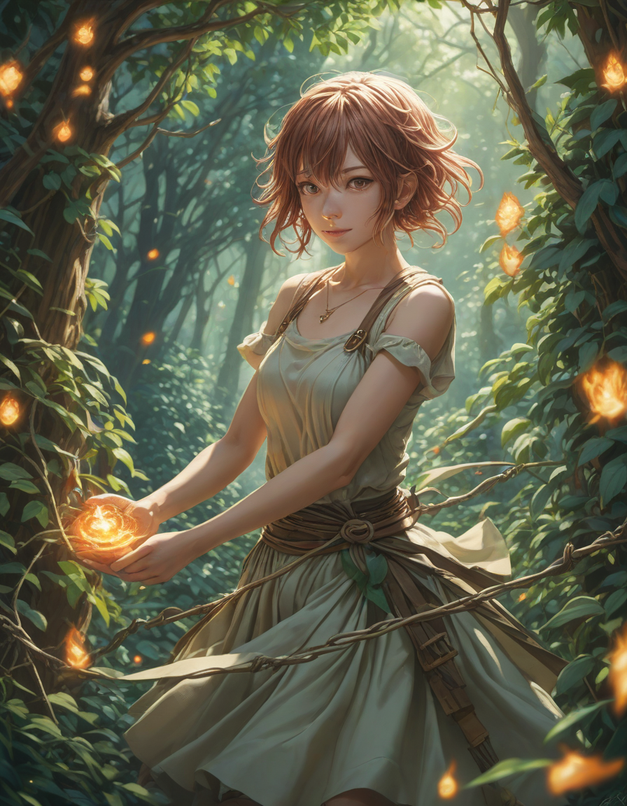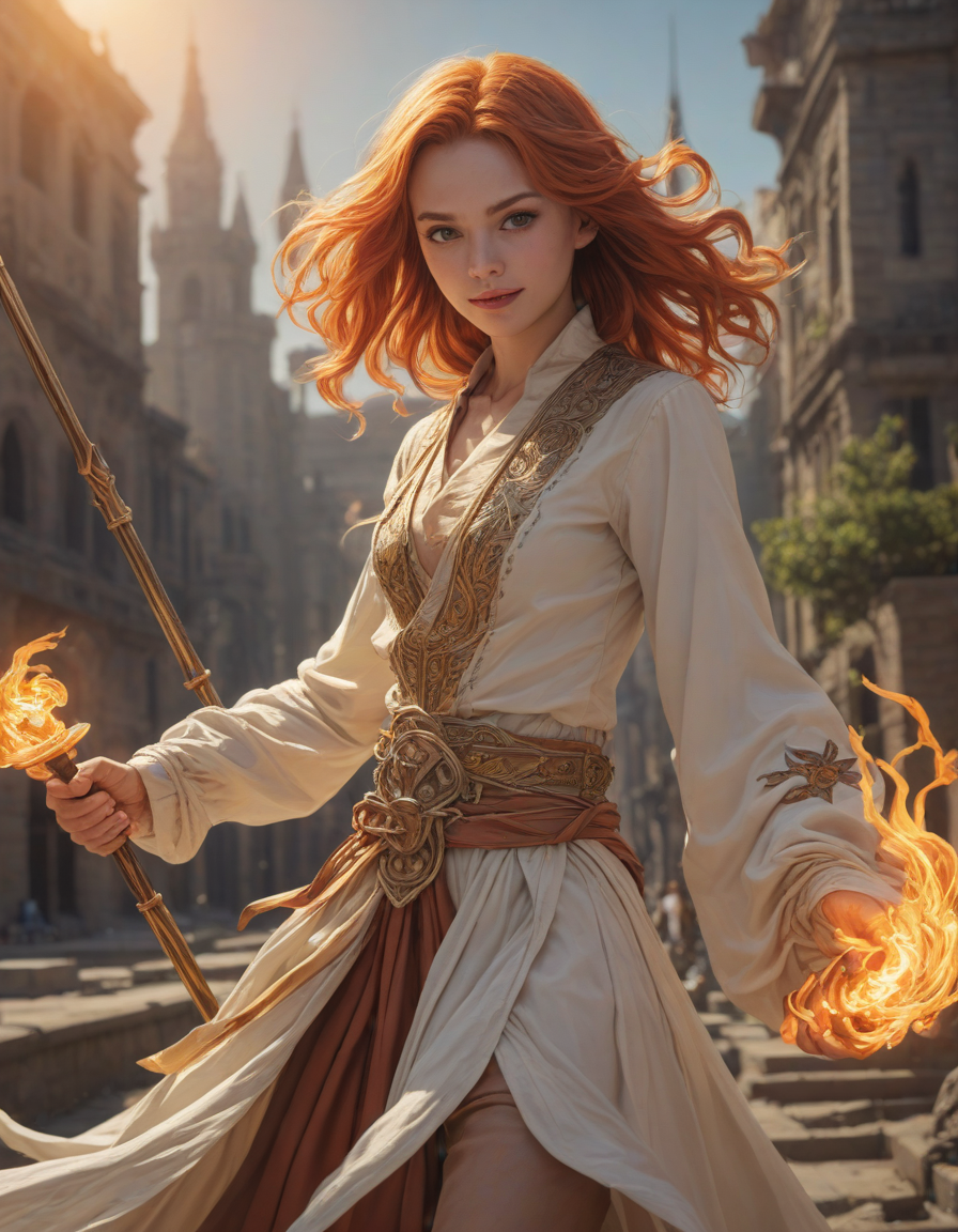 being chased, active, weilding a one-handed weapon in both hands, one-handed weapon, weapon, , Sunlit strands, unshakable determination, anime, a vivid wallpaper, paint blending, Glistening in the light of a thousand candles, Dreamlike wonderland, cheesy smile