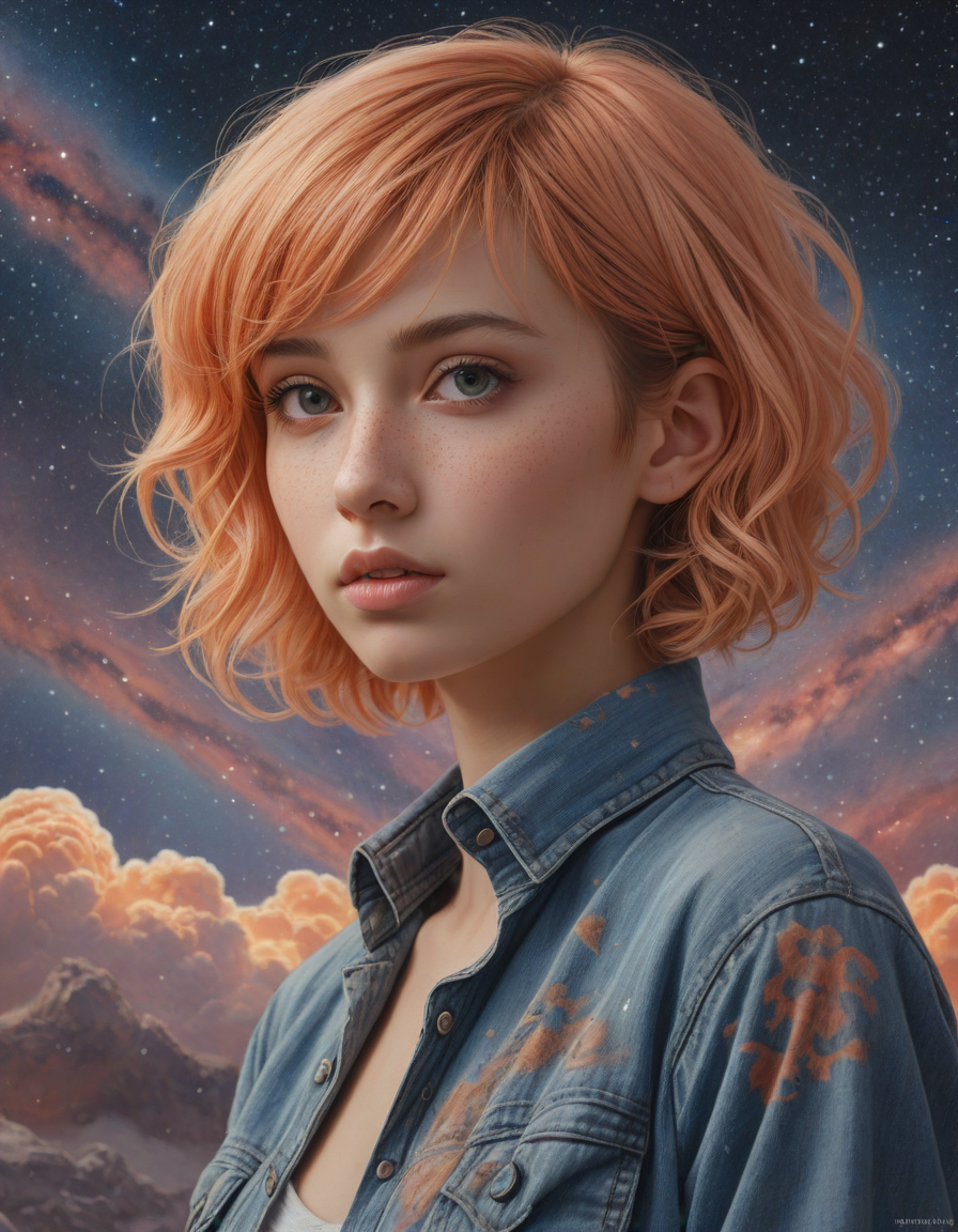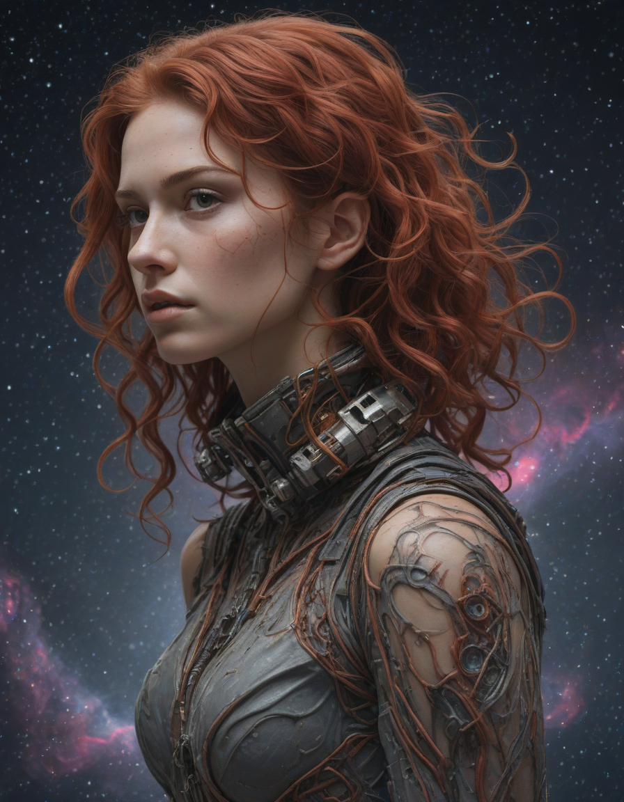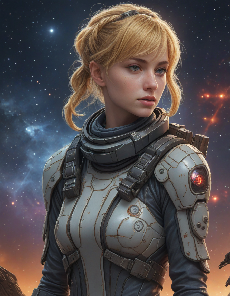 wheres waldo picture, Galactic nebulas swirling, Tattered clothing, figurine, intense, Sculpted cheekbones