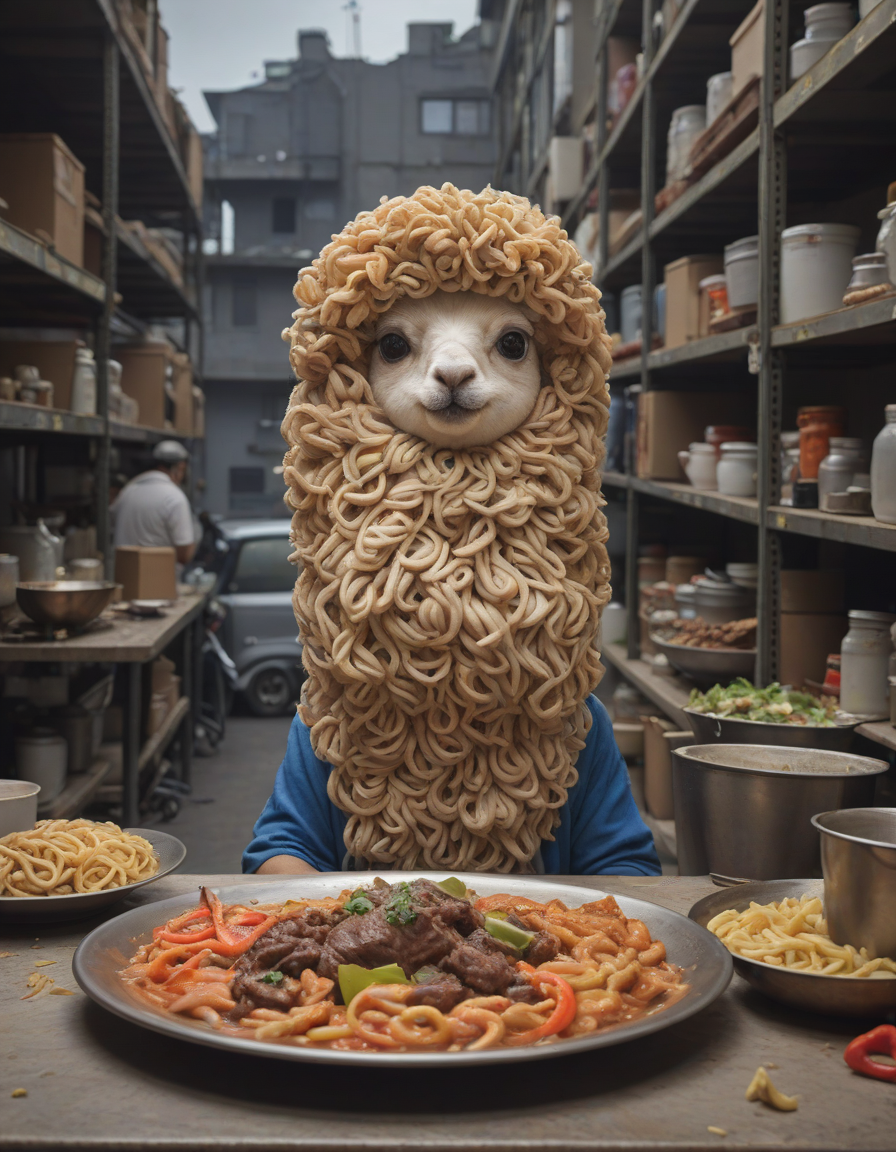 alpaca photobomb, wrapped in s... (7 loras merged)