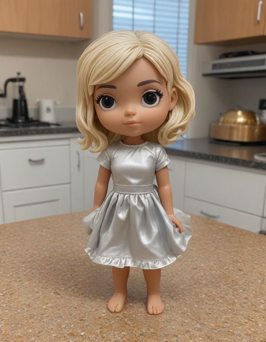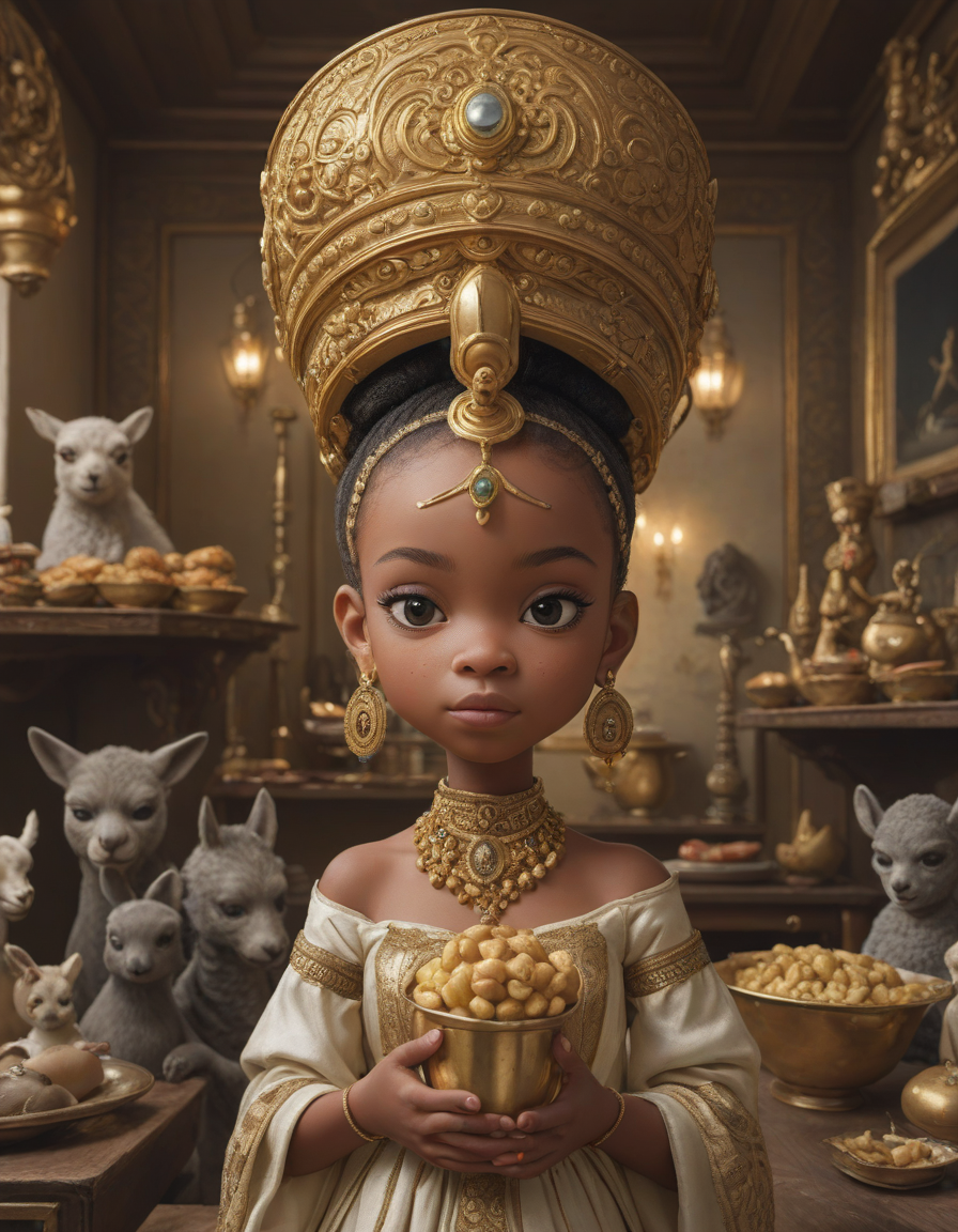 alpaca photobomb, wrapped in silk, cooking an extravagant meal, Shame, funko pop big head, big head mode, gigantic head, small body, sleek, futuristic fashion, panicked